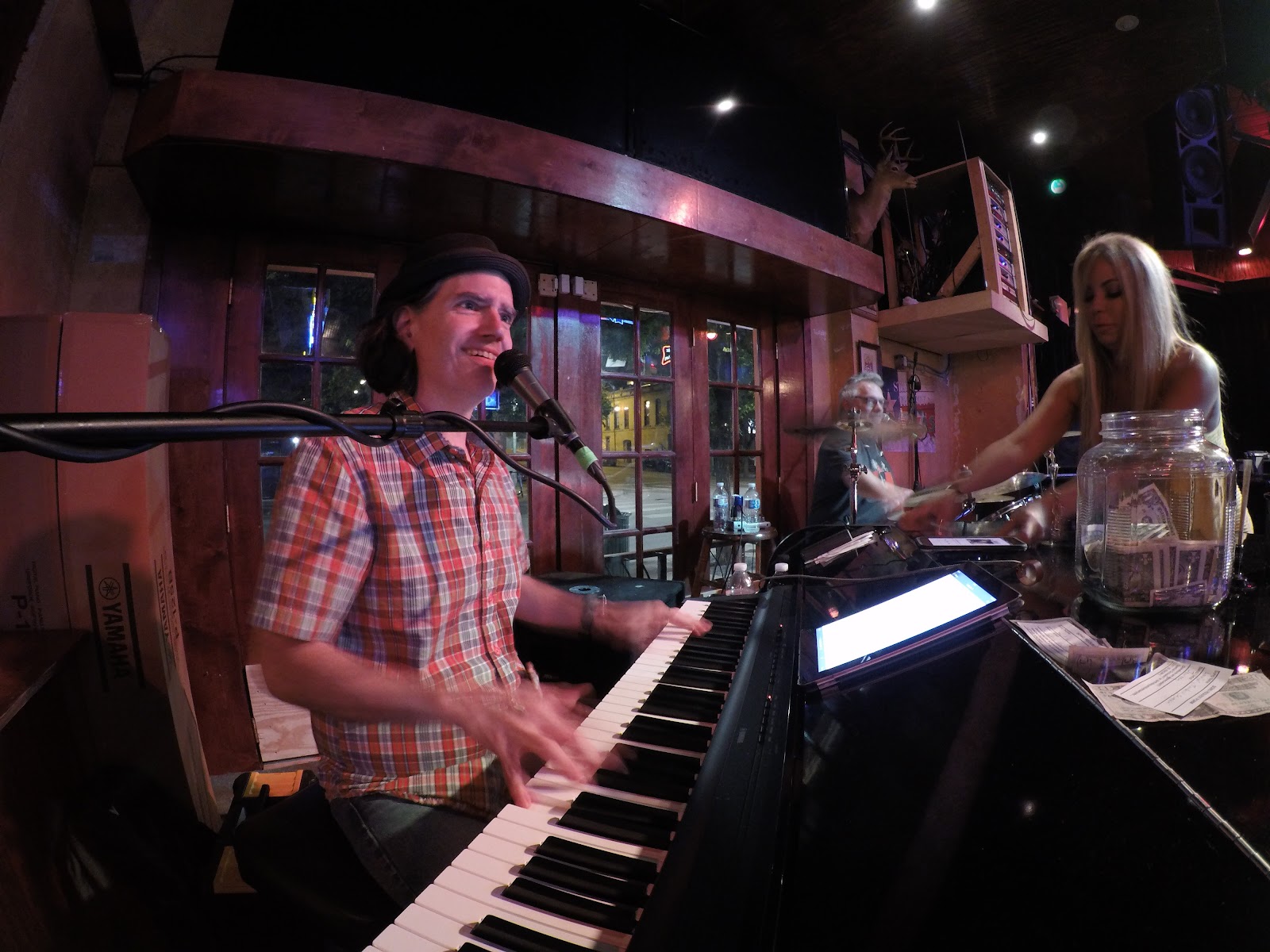I performed a whole buncha tunes on 6th Street in Austin, TX, tonight with drummer Mikey Gammon. We played our 9p-midnight show for a fun group on a lazy Wednesday night. It was a little muggy outside, but we did our best to keep it chill inside! Ha!