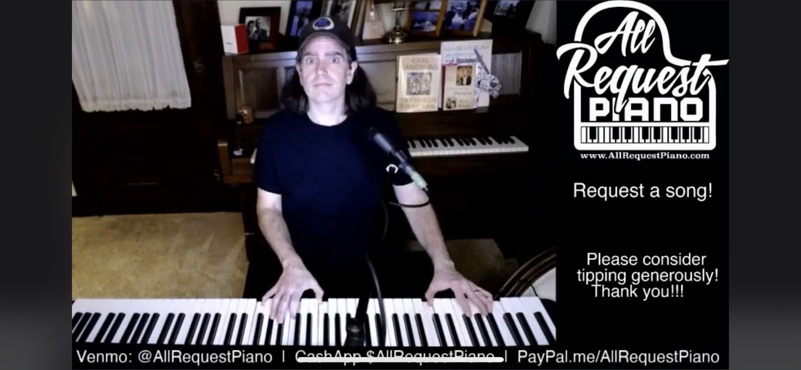 I finished up a lesson with an online student, and figured while I was still online, I might as well do a surprise show! I played a couple hours to a bunch of random friends and fans. I had some really good requests, too! Lots of tunes I played for the first time tonight, which always amazes me. I figured I’ve already played all the songs I know by now, and then, someone asks me for a tune I totally forgot existed. That’s why I love taking requests. It pushes my memory as far as it will go.