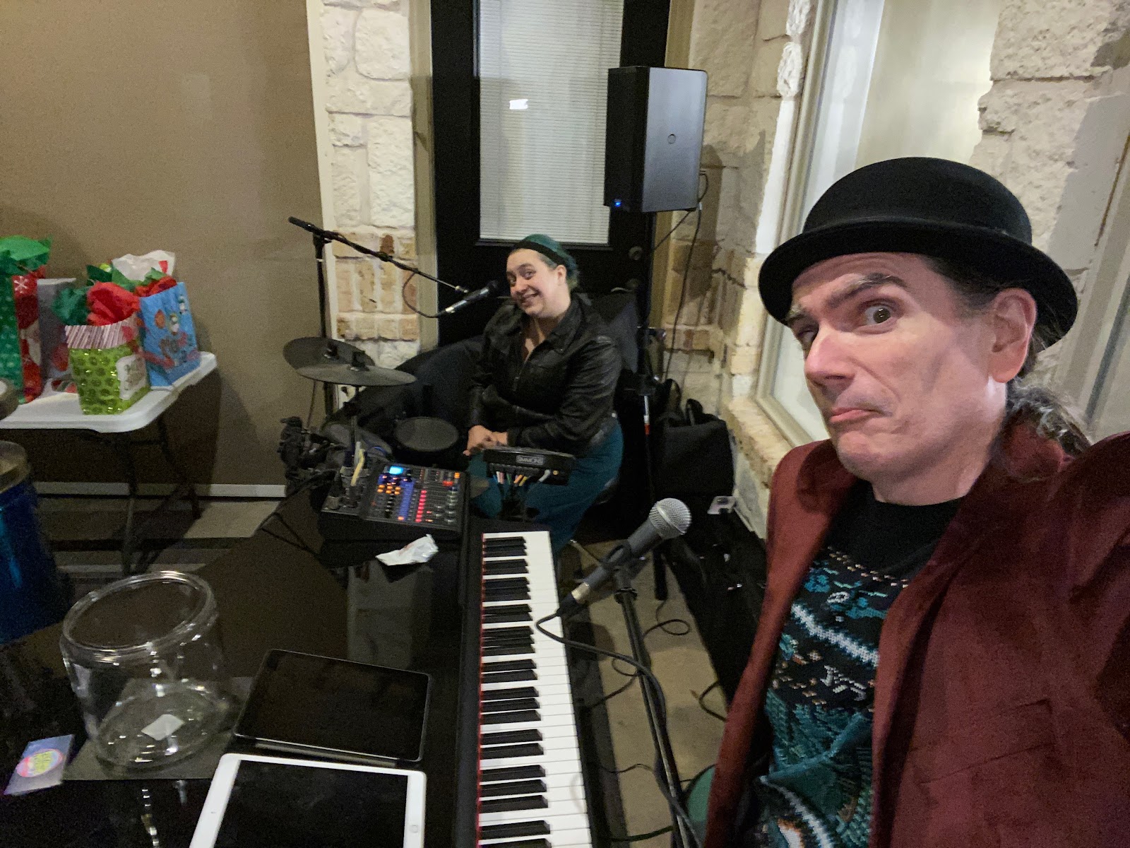 We played a house party in Leander, TX, representing The Flying Ivories for our 2nd show today. It was a fun, high spirited, holiday event/birthday bash! We played from 7:30p-9:30p, and the party was still going strong as we packed up after playing three encores! Now heading home to get some rest before playing our 6th show of the weekend tomorrow in Lampasas.