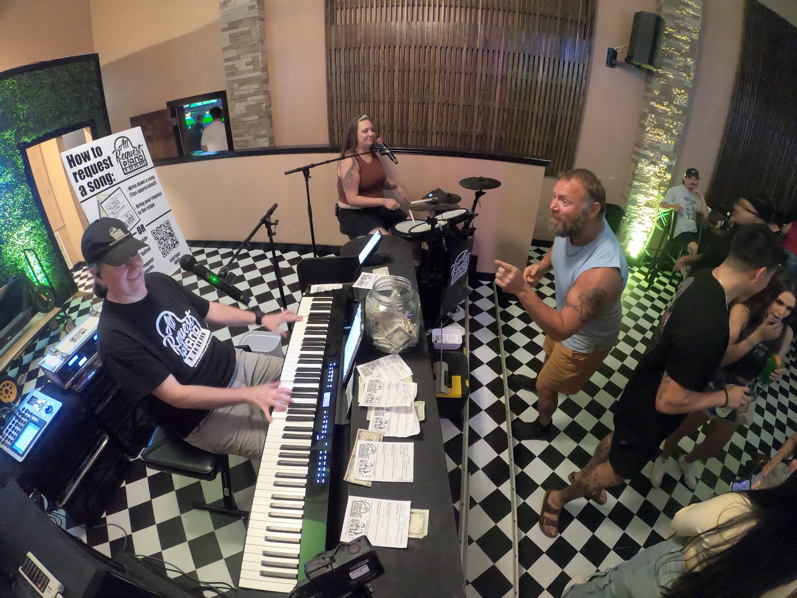 Corpus Christi held their monthly Art Walk downtown tonight, which means Heather and I performed at Old Kress Live! We had several fans out to see us, and they kept the requests coming. We had the pleasure of having Sergio who is one of the bartenders come up and sing “Neon Moon” with us. We always have a good time!