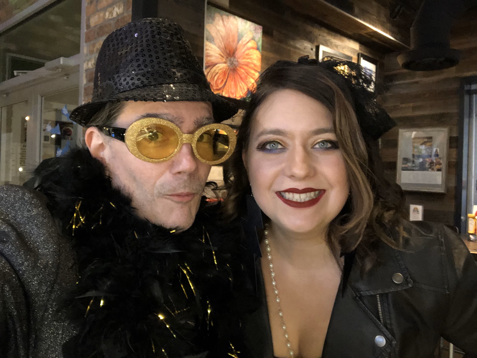 Heather Ray and I performed for a Halloween costume event in The Colony, TX, tonight! She went as Madonna and I as Elton John, plus my wife joined in on the fun as an 80s Goth punk. We always have fun performing together, but it was even more fun tonight because of everybody in the crowd was wearing some fantastic costumes! Cher, Jesus, Ghost Rider, the Power Rangers, mummies, Grumpy Cat, Jimmy Carter, a Starfleet Officer, and bunches more filled the room. Heather rules, and I’d play every show with her if I could. My niece and her husband showed up and sat up close, so I was able to joke around with them a bit all evening, which was fun, too. Great night, and the costume contest at the end was hard to judge, but congrats to the three who took home cash prizes. Next show for me is in Corpus on Halloween with Heather, and our costumes for there will be epic.