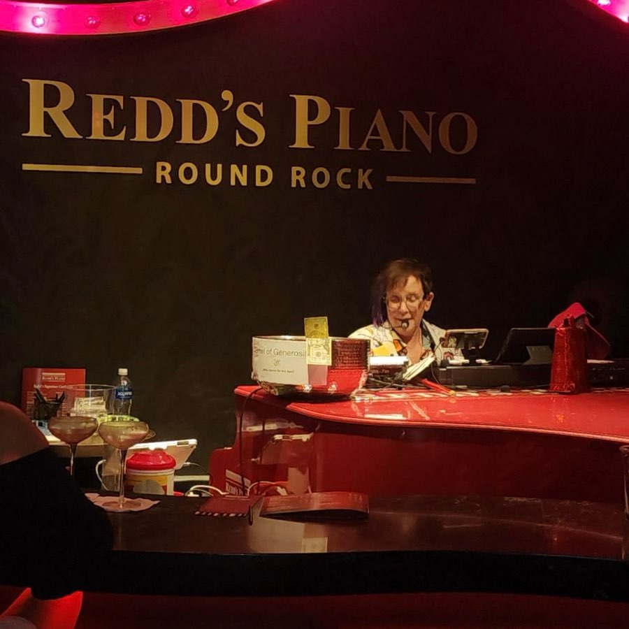 We played a dueling pianos show for a corporate event tonight in Round Rock, TX, at the Kalahari Resort. We’ve played for this group 3 or four times in the past, and we always have a good time with them. Midway through the show, a woman came and asked me if a young lady named Paisley could come play “Piano Man”, so I said “Of course”! She ran and got her own harmonica and head gear and sounded great. I got to play “Peaches” for a very happy young man and his father. After our show wrapped up, one of the people who hired us asked if we had our caricature done yet. He pointed us towards William, the butt sketch artist. For posteriors sake, I’ve blurred his sexy rendering of both of our back sides. It made it even funnier. After the show, we headed into Redd’s Piano and watched Tammy Tanner play a few songs and saw the cutest service pup, then drove to Darwin’s Pub where we caught a couple tunes by the always entertaining team of Michael Carrandi and Joe Resnick, headed down 6th Street to Pete’s and said hi to our friends Mike Atkins and Chris Saucedo, and then drove to In-N-Out on the way home. We packed it in today!